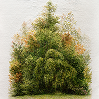Fabric and threads are a way to show the effect of live foliage, which color and depth depend on the time of day, weather, and light.