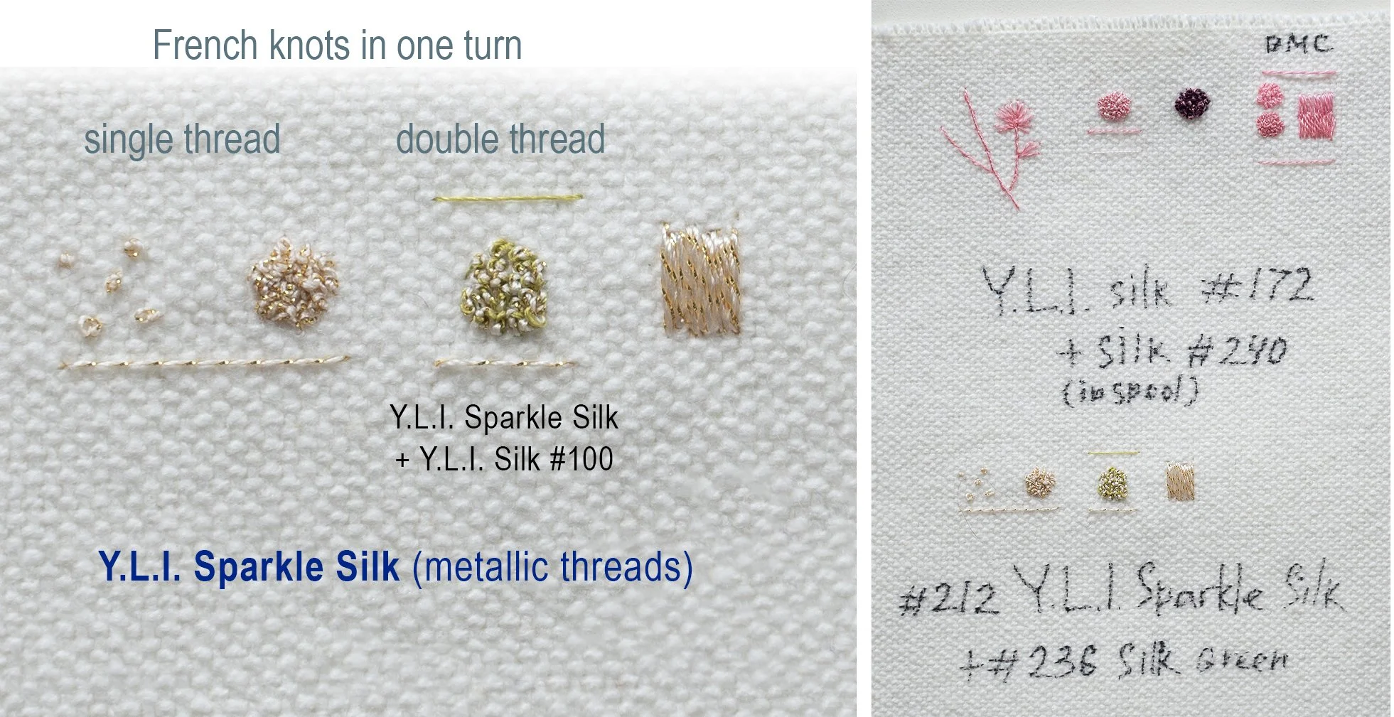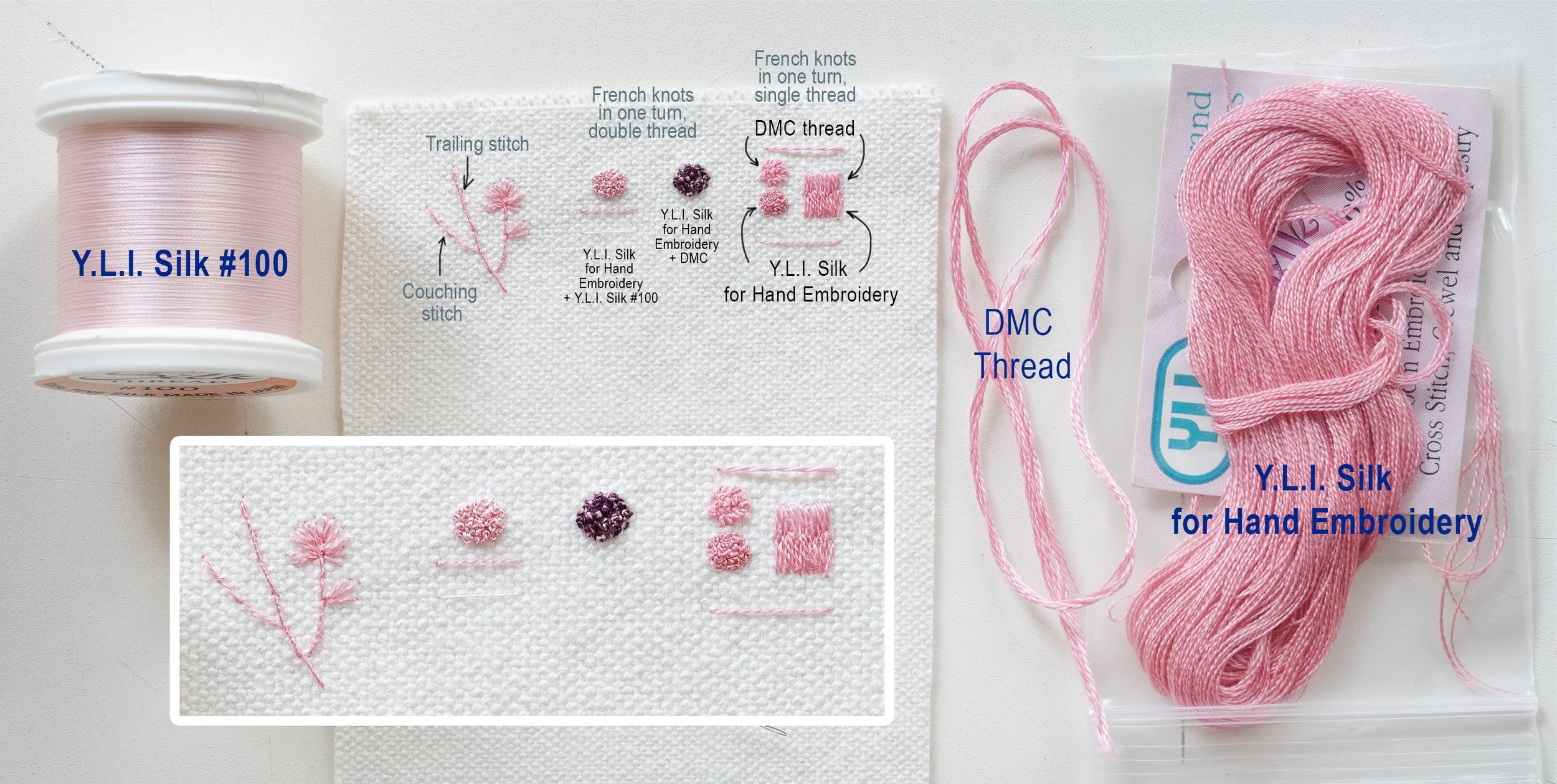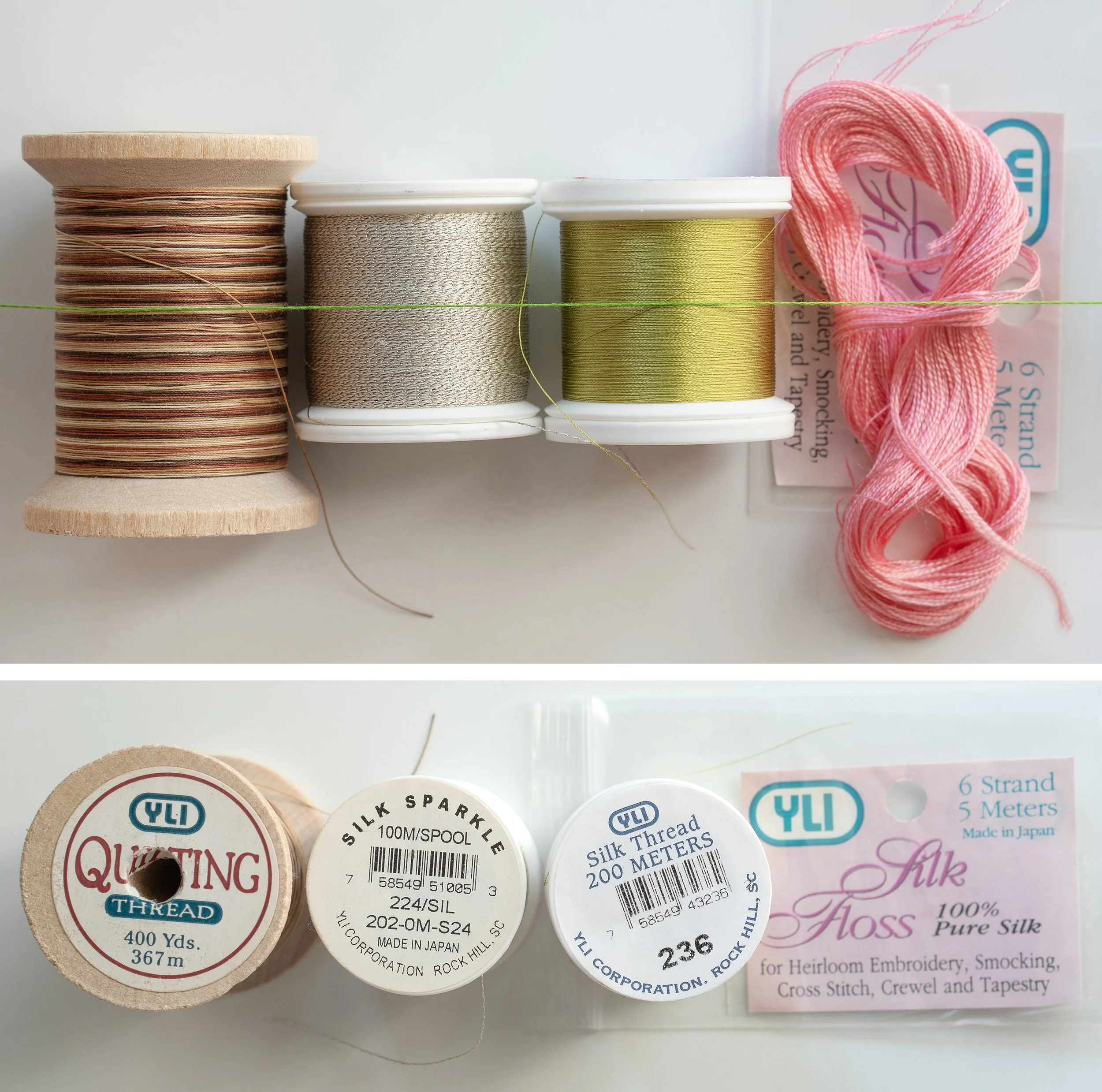 Silk #100 Threads “is our 100 wt. silk thread, made from premium Japanese filament silk” (this text is taken from the Y.L.I. website)